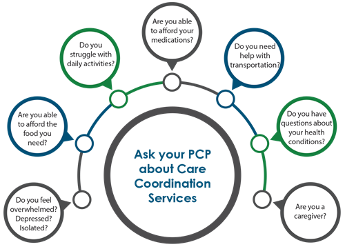 - Coordinate physical and behavioral health, dental, vision, home health, and long-term care needs